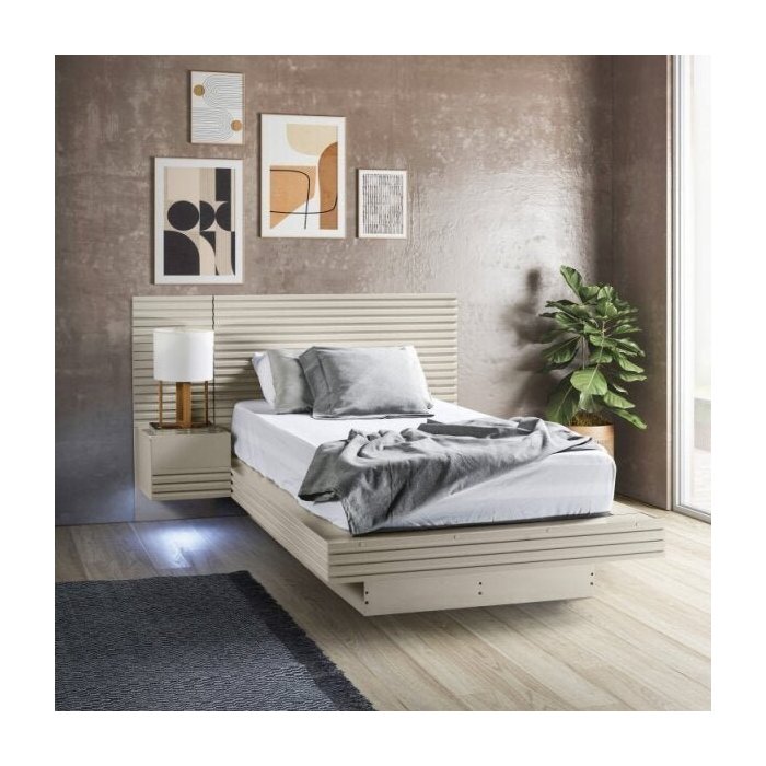 Conjunto Cama Solteiro com Cabeceira e 1 Mesa de Apoio com LED Tarumã CabeCasa MadeiraOriginals