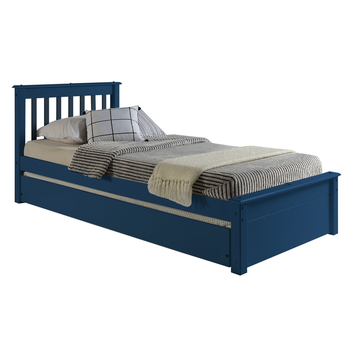 Conjunto Cama Solteiro Inglesa com Cama Auxiliar em Madeira Maciça Azul Azul