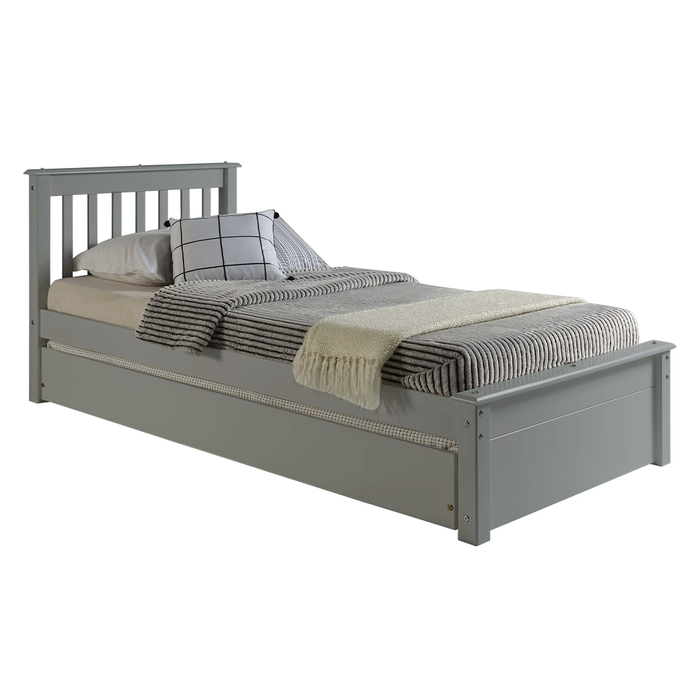 Conjunto Cama Solteiro Inglesa com Cama Auxiliar em Madeira Maciça Cinza Cinza