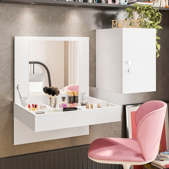Conjunto Camarim Penteadeira Suspensa com Gabinete Aéreo 1 Porta Diamante Belaflex Branco Fosco Liso