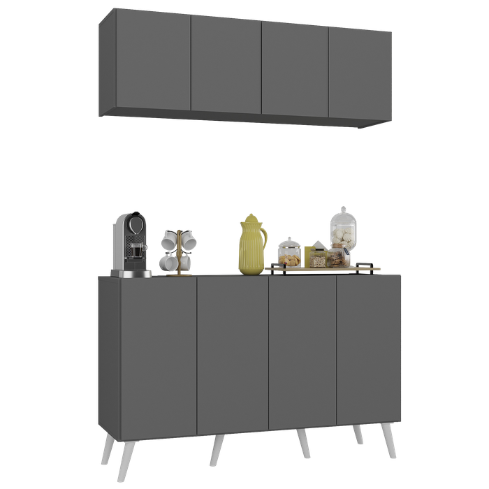 Conjunto Cantinho do Café Retrô Armário e Aparador 4 Portas Multimóveis Mp1084 Grafite/branco Grafite/Branco