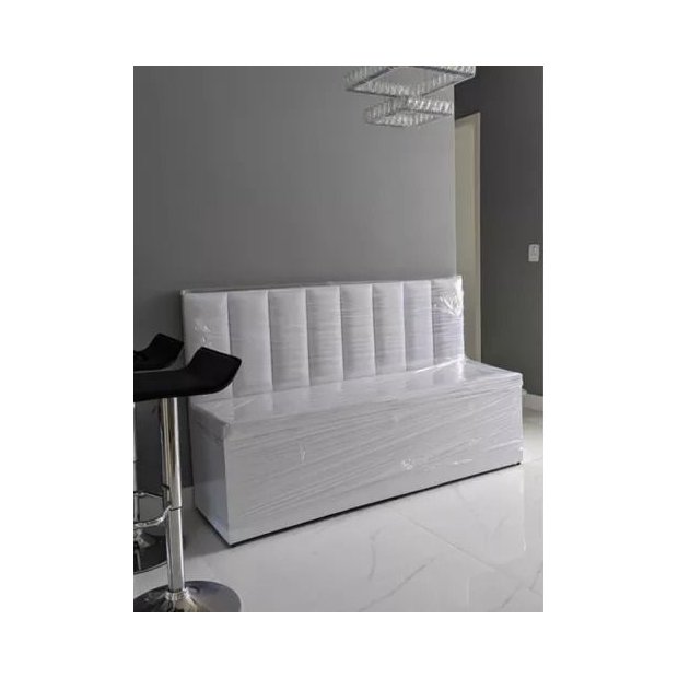 Conjunto Canto Alemão Baú Encosto Ripado Corino 110x45cm:branco BRANCO