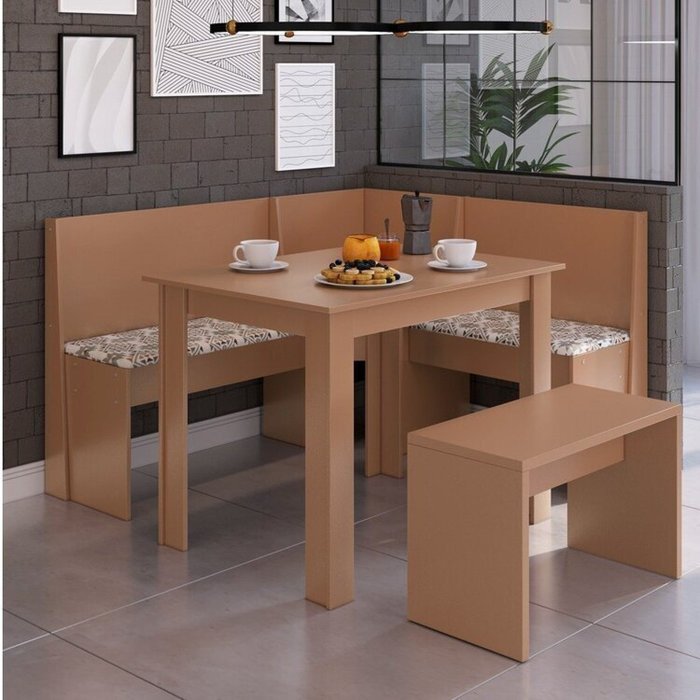 Conjunto Canto Alemão com Mesa Fixa, 1 Banco e Almofadas Ceramic
