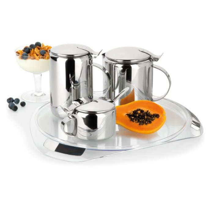 1 Bandeja, 2 Bules, 1 Açucareiro, 1 Colher
