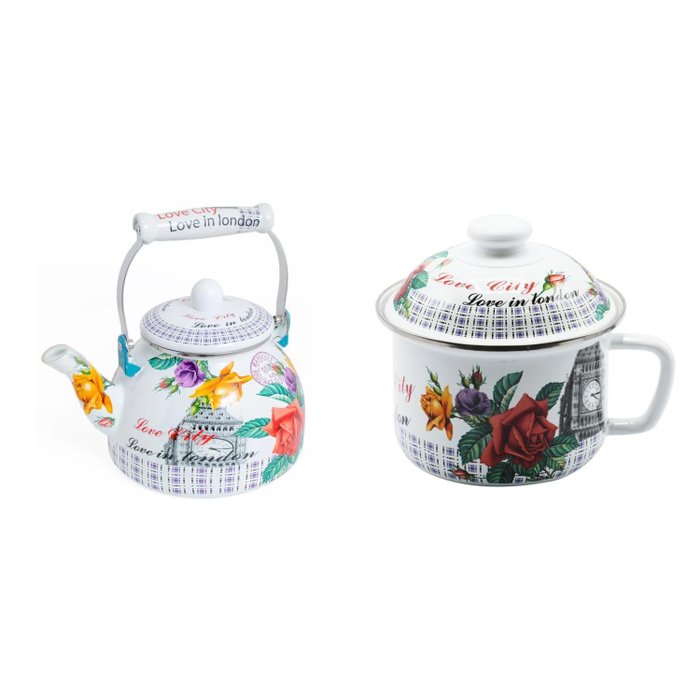 Conjunto Chaleira e Leiteira Esmaltadas A5 Importadora
