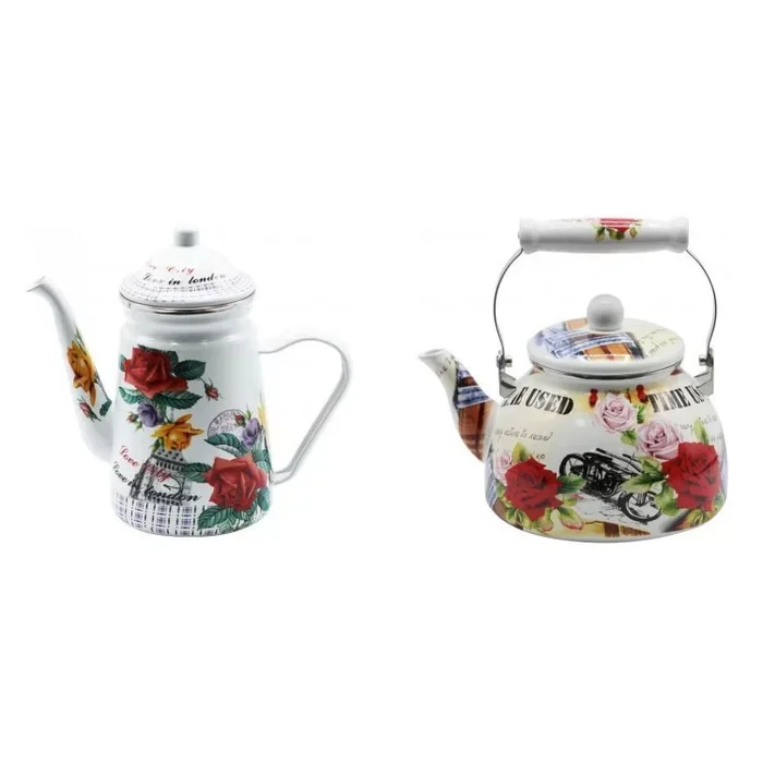 Conjunto Chaleira Esmaltada sem Apito 2,5 Litros e Bule Esmaltado com Tampa 1,2 Litros A5 Importador