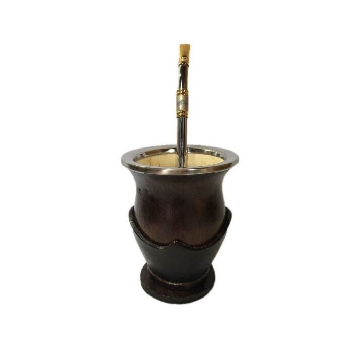 - Cuia Uruguaia com aprox. 11 cm de altura e suporte em couro