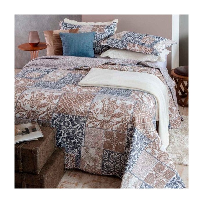 Conjunto Colcha Casal Estampada Jolitex mais Duas Fronhas Ultrassonic Dyuri Sabara