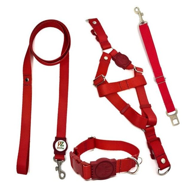 Conjunto Coleira,peitoral, Guia e Cinto para Cachorro - Tamanho Grande - Modelo Red Red