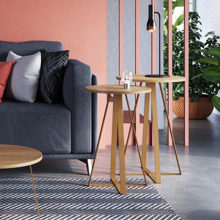 Conjunto com 02 Mesas Laterais 40cm e 45cm Pés Metálicos 27958 Artesano - Hanover/dourado