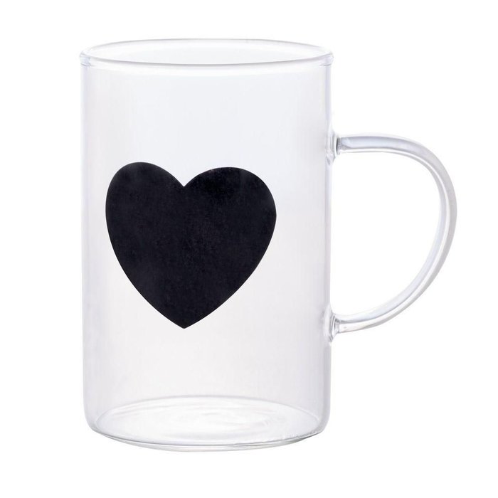 - 01 Conjunto com 06 Canecas Black Heart 280ml em vidro Borossilicato