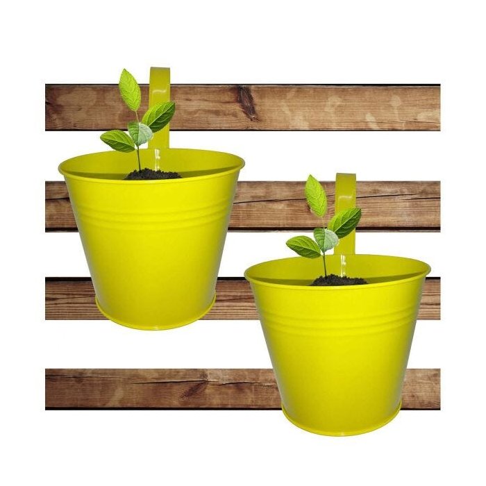 Conjunto Com 2 Cachepot De Metal Para Jardim Suspenso Vertical Grande Amarelo (CACHEPO-3) amarela