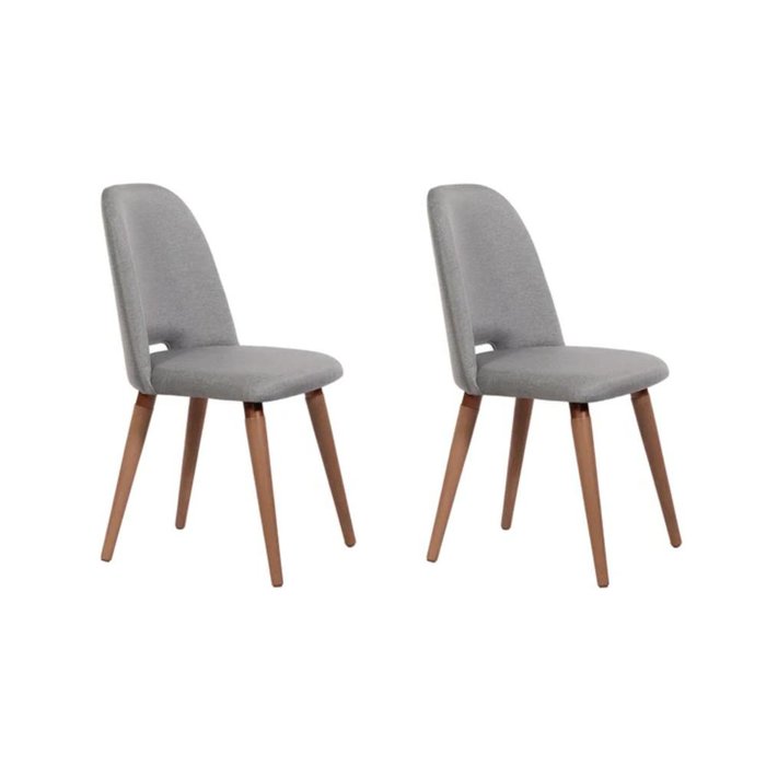 Conjunto com 2 Cadeiras de Madeira Maciça Estofada Drop - Cinamomo C/ Linho Carbono - Cobre