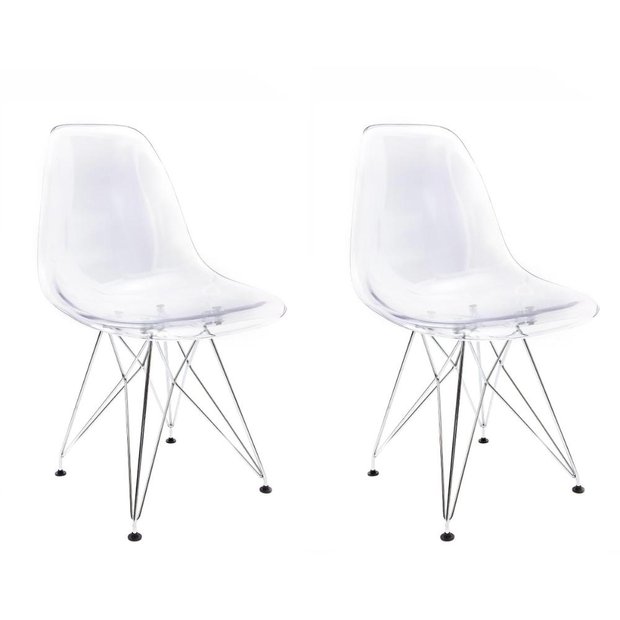 Conjunto com 2 Cadeiras Eames Transparente - Base Eiffel Cromada Transparente