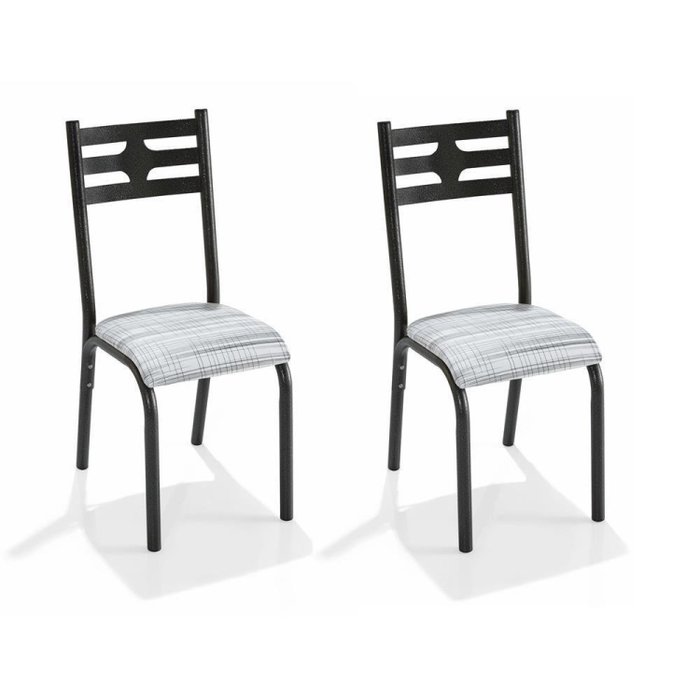 Conjunto com 2 Cadeiras para Sala de Jantar Vip Craqueado Preto/Riscado Branco
