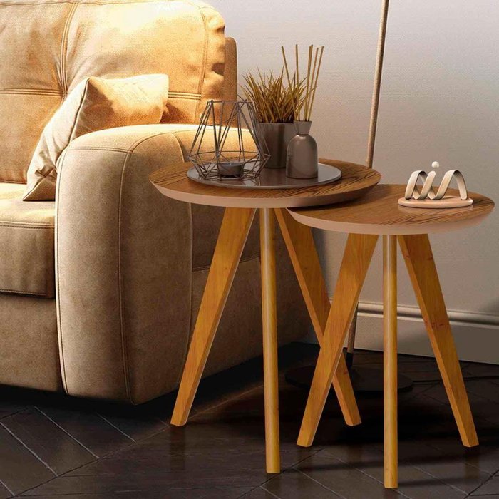 Conjunto Com 2 Mesas Laterais Retrô Freijó Jarca Shop Jm