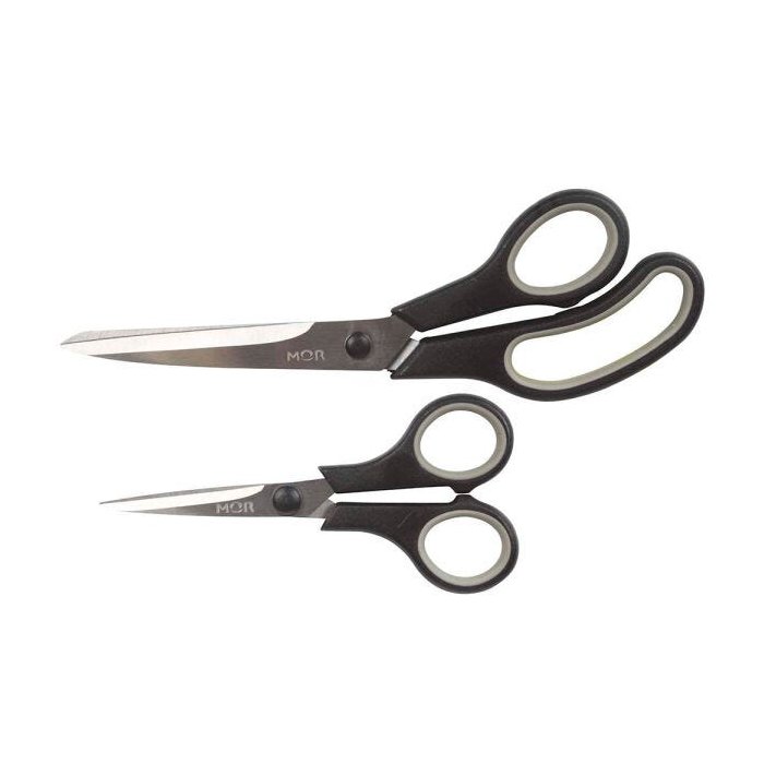 Precisão no corte e conforto para as mãos são características do Conjunto de Tesouras Mor. Em dois tamanhos diferentes, esse conjunto possui lâminas afiadas em aço inoxidável que garantem a excelência no corte e cabo revestido em borracha termoplástica, que proporciona maior segurança ao manusear. Produzidas com materiais de alta qualidade que garantem durabilidade às tesouras proporcionando eficiência durante o uso.