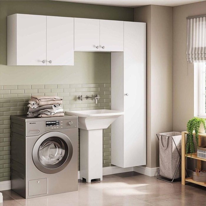 Conjunto Com 3 Armários De Lavanderia Suspenso Multimóveis Cr30048 Branco