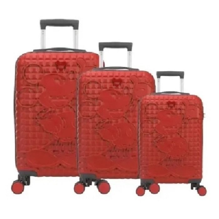 Conjunto com 3 Malas para Viagem Mickey Mouse Vermelha - PK Luxcell - Material em ABS