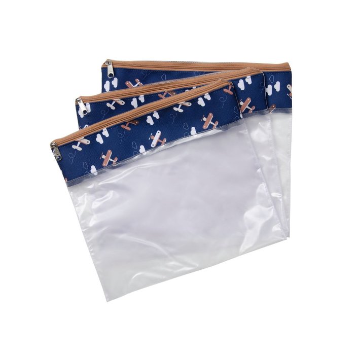 Conjunto com 3 Saquinhos de Mala Maternidade Avião Masterbag