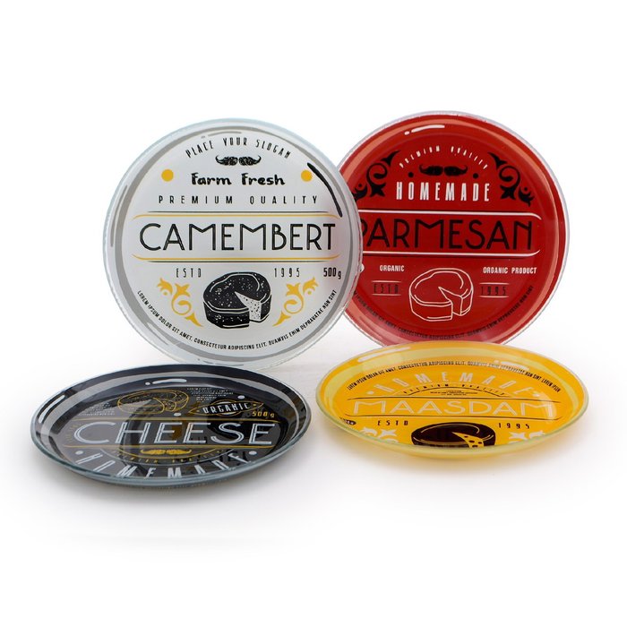 Conjunto com 4 Pratinhos de Vidro Cheese Queijos