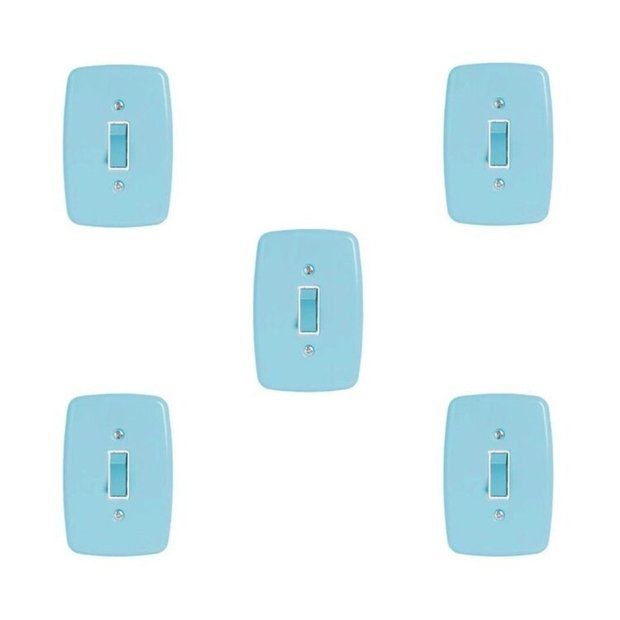 Conjunto com 5 Interruptor de 1 Tecla Simples com Placa 4x2 Azul