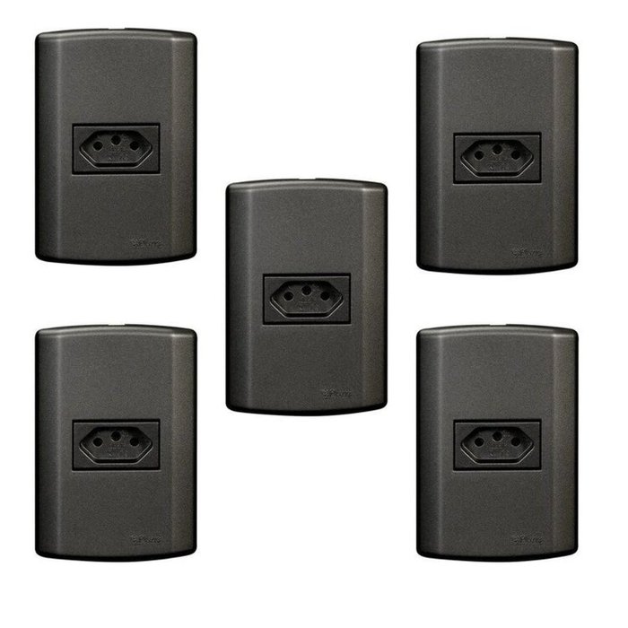 Conjunto com 5 Tomadas 2p+t 10a 250v, Modular, com Placa 4x2 e Suporte Grafite