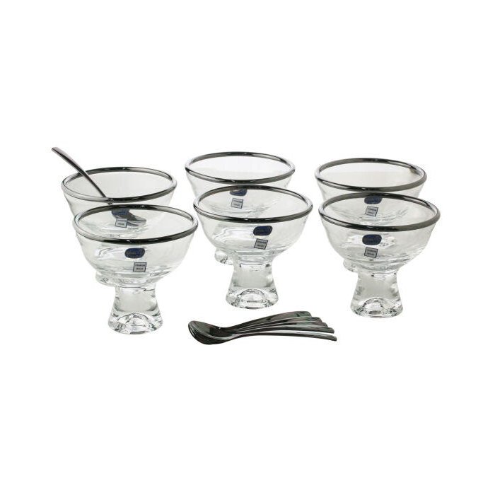 Conjunto Com 6 Bowls De Vidro E 6 Colheres De Inox Para Sobremesa Vera Black