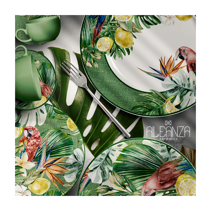 Conjunto com 6 Pratos Raso Alleanza Paraíso Tropical 1°Linha