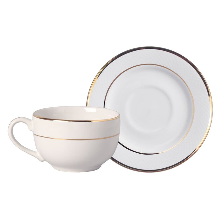 Conjunto com 6 Xícaras de Chá com 6 Pires Relevo Ouro 250 Ml Alleanza Cerâmica branco