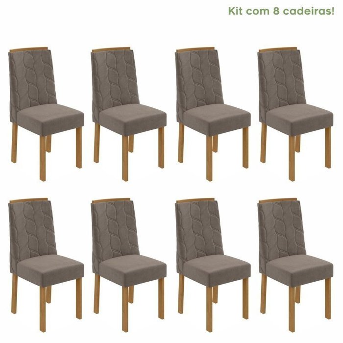 Conjunto com 8 Cadeiras para Sala de Jantar Astrid Amêndoa Clean/Animale Bege