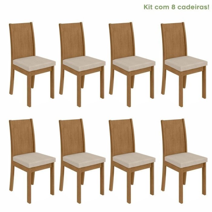 Conjunto com 8 Cadeiras para Sala de Jantar Athenas Amêndoa Clean/Rinzai Bege