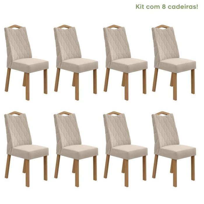 Conjunto com 8 Cadeiras para Sala de Jantar Vênus Amêndoa Clean/Rinzai Bege