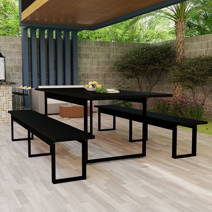 Conjunto com Banco e Mesa para Area Goumet e Cozinha:preto Preto