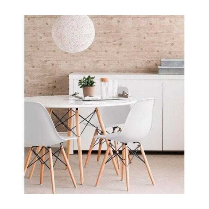 Conjunto de Mesa com 4 Cadeiras Base Eiffel Madeira Se você busca um ambiente com design irreverente, esse clássico é uma ótima opção para decoração moderna em diversos ambientes, tais como: sala de jantar, sala de estar, escritório, cafés, recepções, bares, restaurantes, entre outros. Perfeita combinação de conforto e estilo, sua forma ergométrica se adapta perfeitamente ao formado do corpo, a combinação de pernas de madeira e fios de aço preto, não adicionam apenas valor estético e também proporciona estabilidade a cadeira. Material: - Assento Em Polipropileno - Base Madeira com acabamento em aço pintado Dimensões: Altura Total: 80cm Altura até o assento: 45cm Largura: 46cm Profundidade: 56cm Peso Unitário: 5kg Peso Suportado: 120kg A cadeira DKR é um clássico na história do design, um marco da decoração. Criada pelo casal Charles e Ray Eames, conhecidos pelos seus trabalhos solos antes de se unirem, após essa união se tornaram mundialmente conhecidos e criaram a cadeira DKR. Ambos já experientes no campo da arquitetura, trouxeram várias técnicas e materiais novos para o campo de design de produto com uso de fibras de vidro, resina plástica e malha metálica produzida diretamente para eles. A cadeira DKR foi criada em 1953, possui esse nome por ser um modelo Dining, ou seja, pensado para acompanhar mesa de jantar. O K é de k-wire, que é um material de aço cirúrgico para ossos fraturados, o R é de R-wire, referente a base de arame comumente conhecida como pé Torre Eiffel. Existe um material base de madeira cujo nome Eames DSW (Dining Height Side Chair Wood) pela sua base, foi considerado um Designer revolucionário e em 1948 venceu o concurso de Design Baixo Custo no museu de Arte Moderna, NY. Por causa de suas linhas simples, ela não pesa na decoração e se integra facilmente ao ambiente. Mesa: - Mesa com tampo em MDF laqueado; - Estrutura em aço pintado; - Pés em madeira. Dimensões 80 X 80 Centímetros Peso: 6,0 Kilogramas Cozinha e Jantar Materiais: MDF, aço, madeira Montagem: Necessita montagem? SIM (produto entregue desmontado) Limpeza e Manutenção: O polipropileno é resistente a riscos e de fácil manutenção. Limpeza diária com um pano úmido e macio em solução de água e detergente neutro. Enxaguar com pano úmido e secar em seguida. JAMAIS utilizar solventes como benzina, thinner, acetona, produtos abrasivos como saponáceos, esponjas de aço e similares. A peça pode ser usada ao ar livre, mas deve ser limpa se for exposta a chuva . - Produto Importado - Imagens Meramente Ilustrativas - Produto enviado desmontado com manual de instruções