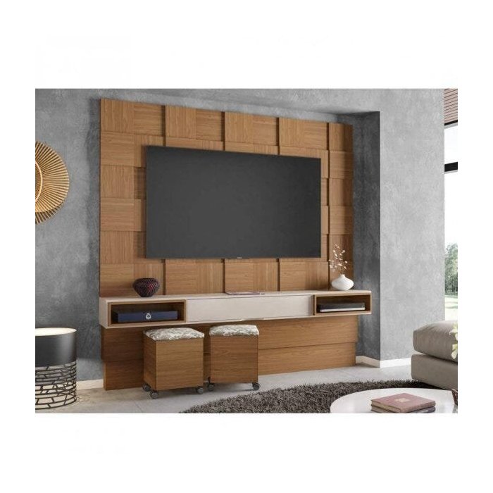 Se seu objetivo é decorar sua sala de maneira moderna e prática, esse é o conjunto perfeito para você. Além de trazer um painel para TV de até 60 polegadas e nichos decorativos, este conjunto traz a você puff\'s baú quadrados que podem ser guardados embaixo do painel, aumentando o espaço de sua sala quando não estão sendo utilizados.