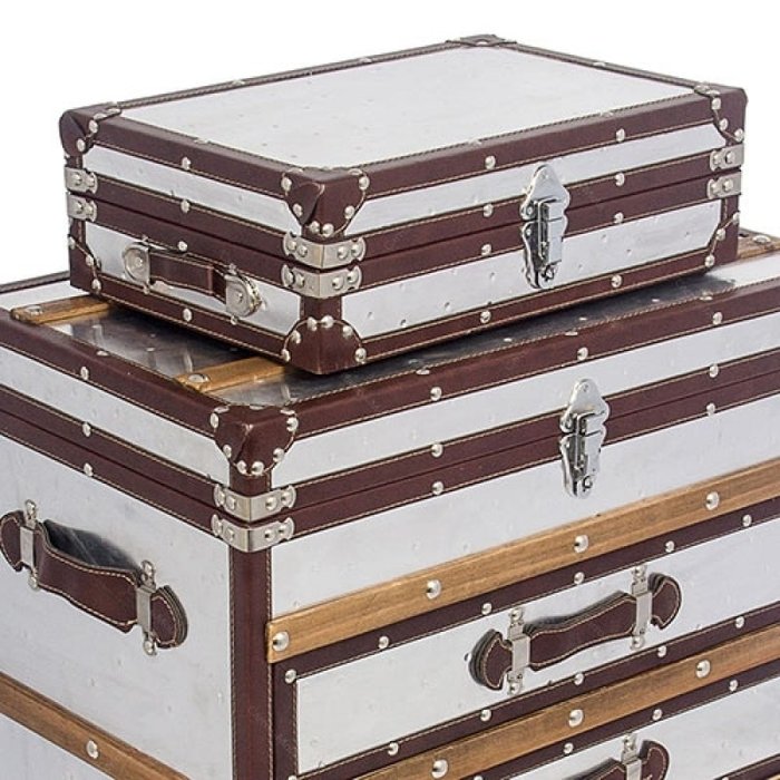 Conjunto Cômoda Baú 4 Gavetas em Alumínio e Madeira Fullway