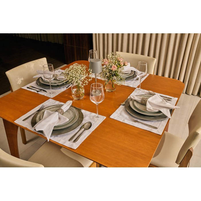 Conjunto completo: inclui todos os elementos para uma mesa posta funcional e decorativa.
