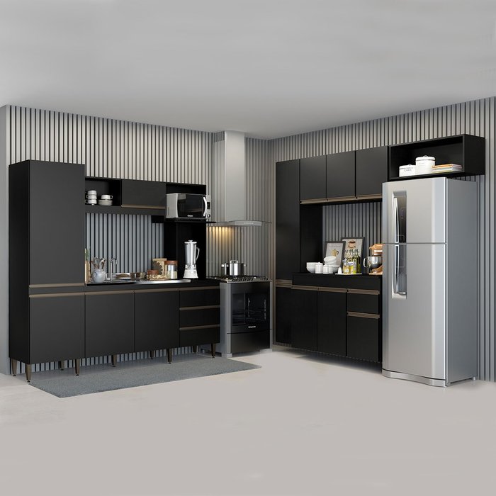 Conjunto Cozinha Completa 180/215 Cm MDP Preto Texturizado - MENU