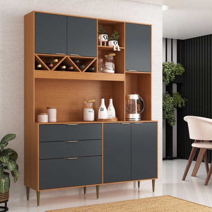 Conjunto Cozinha Sabrina 5 Portas 2 Gavetas Angelin/Grafite