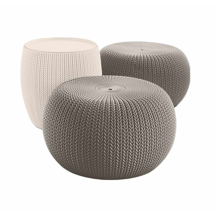 Conjunto Cozy Seat Keter – 2 Pufes + 1 Mesa Baú com Textura Tricô