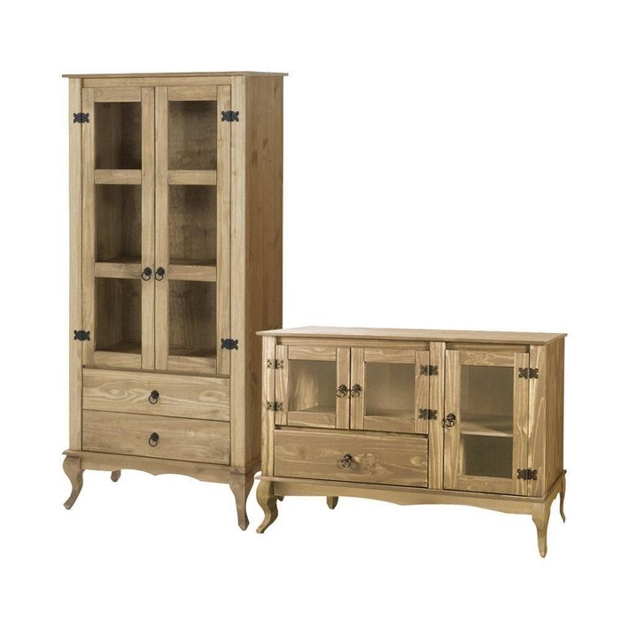 Conjunto Cristaleira e Balcão Madeira Maciça Reforçada Mel Mel