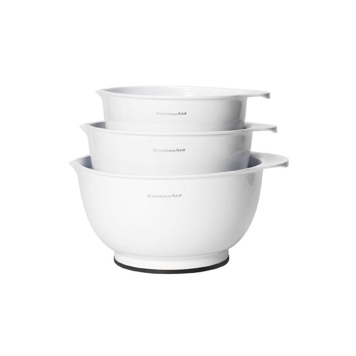 Conjunto de 03 Bowls de Plástico sem BPA Kitchenaid com pé macio em branco