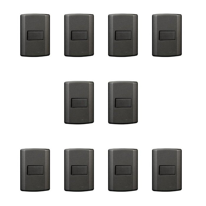 Conjunto de 10 Interruptores de 1 Tecla Simples, Modular, com Placa 4x2 e Suporte Cinza