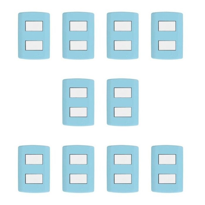 Conjunto de 10 Interruptores de 2 Teclas Simples, Modular, com Placa 4x2 e Suporte Azul/Branco