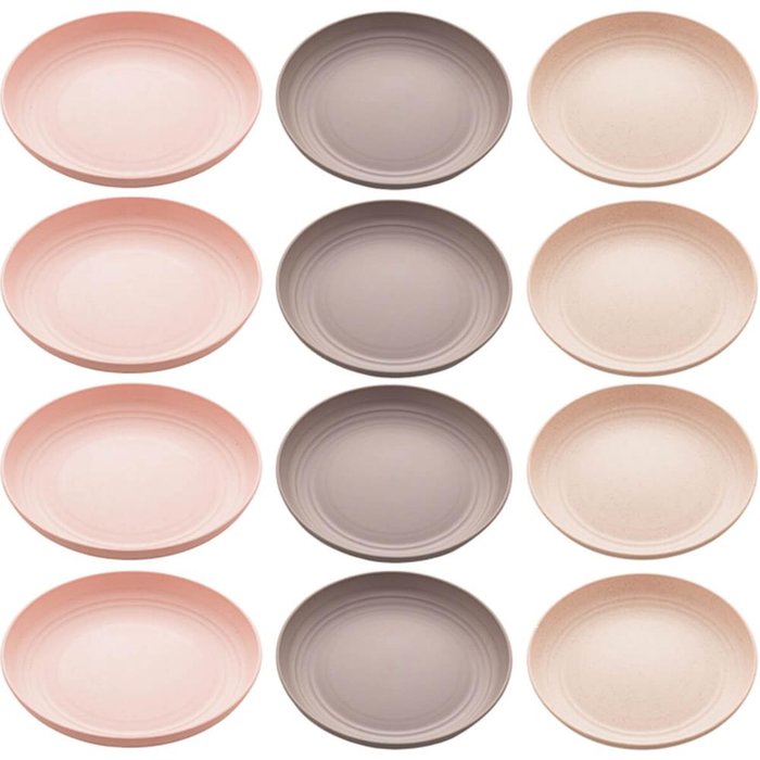 Conjunto de 12 Pratos de Bambu e Polipropileno 27cm Colorido Bandejas para Servir Lines Lyor.