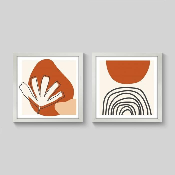 Conjunto de 2 Quadros Abstratos Orgânico Folha e Arcos Rude Arts Memphis 2 Quadros 30x30cm Papel Fot