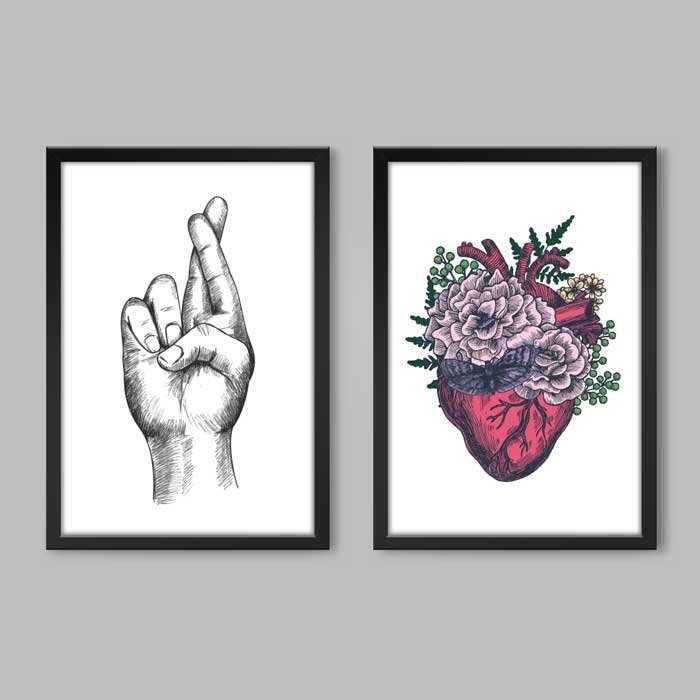 Conjunto de 2 Quadros Fíga e Coração Jardim Arts Memphis 2 Quadros 30x20cm Papel Fotográfico Sem Mol