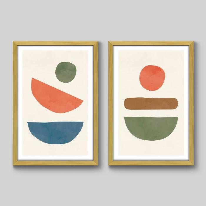 Conjunto de 2 Quadros Geometria e Cores P492 - 2 Quadros 60x40cm - Moldura Padrão Madeira