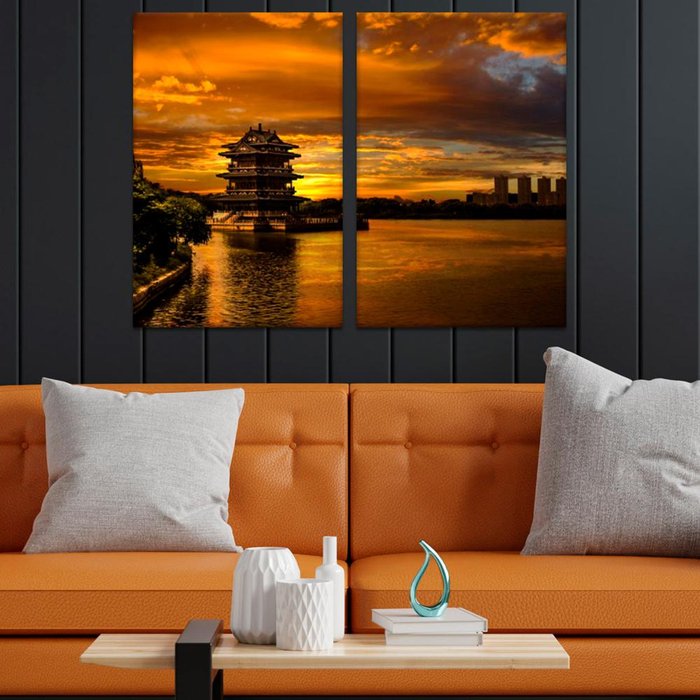 Arquitetura Chinesa esse conjunto de telas decorativas Anoitecer China cai muito bem em ambientes claros. Confeccionado com tecido canvas esticado em chassi de madeira.
